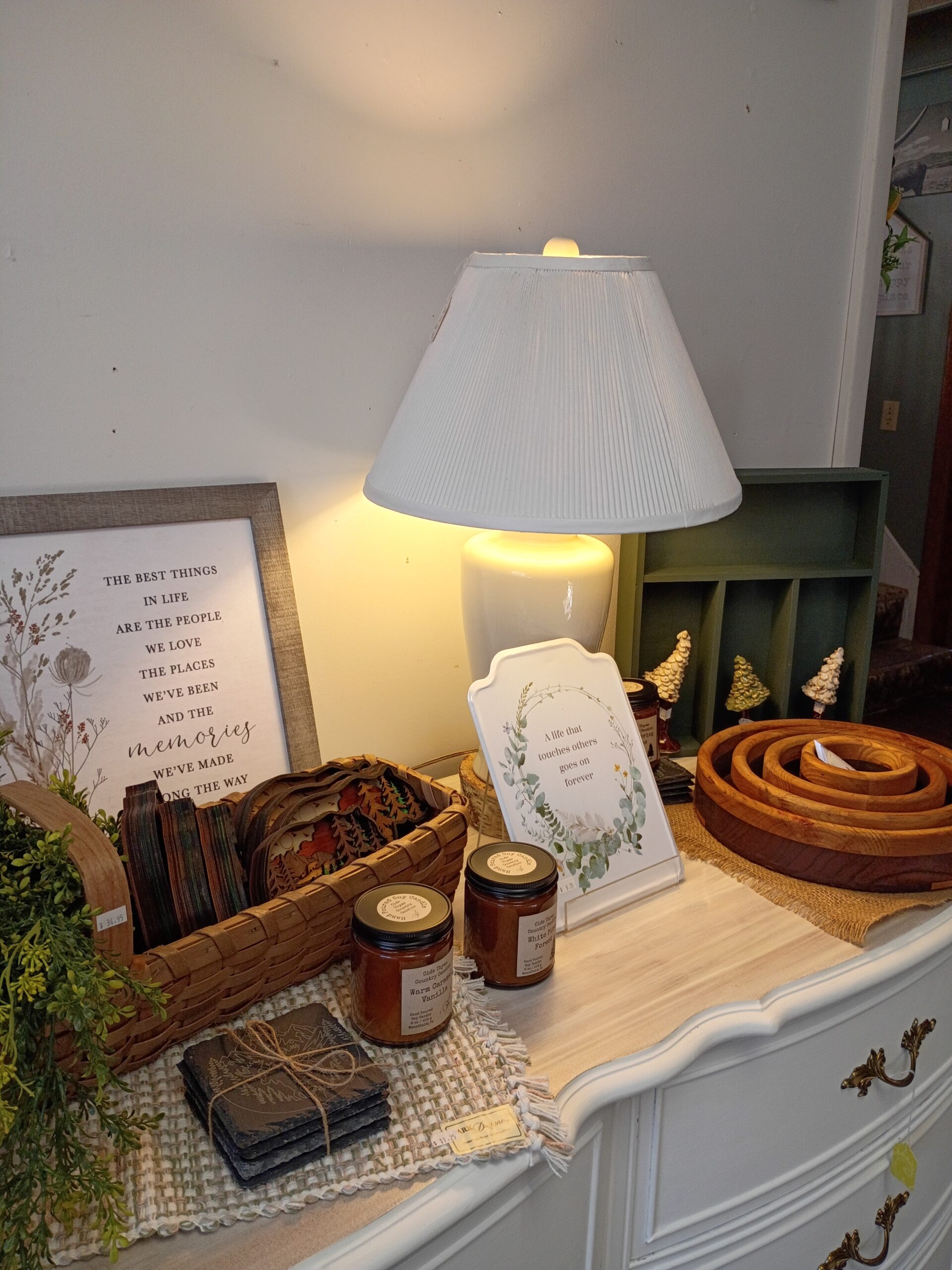 Featuring local, handcrafted pottery, candles, woodworking, jewelry, soaps, tallow and art. You will also find local Maple products, honey, loose leaf teas, home decor, antiques, furniture and so much more.
