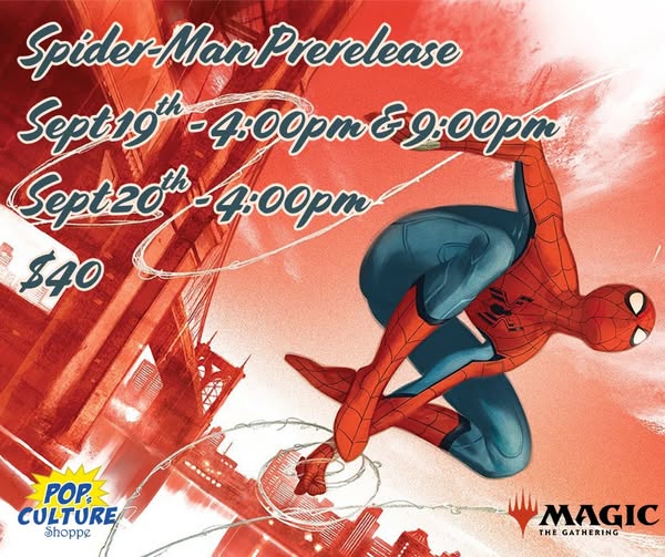 Magic's newest set - Spider-Man - swings into town on September 19th! Collect your favorite Super Heroes and Super Villains from 60 years of comic book action. Bring your favorite parts of Spider-Man to your Magic: The Gathering deck and play your ultimate Spider-Man team up! Prerelease events will be held at 4:00pm and 9:00pm…